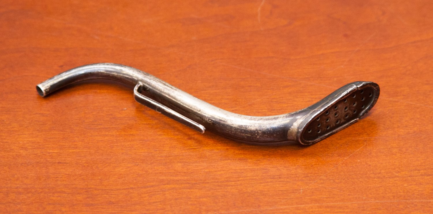 I am told that it is a straw for drinking tea, back in the day when one drank loose leaf tea only....