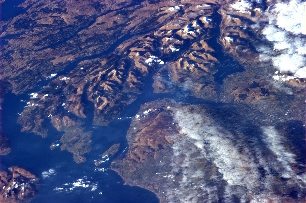Prestwick (bottom left) to Glasgow (right-centre), with Loch Lomond (centre-right) and Inveraray (top left I believe)