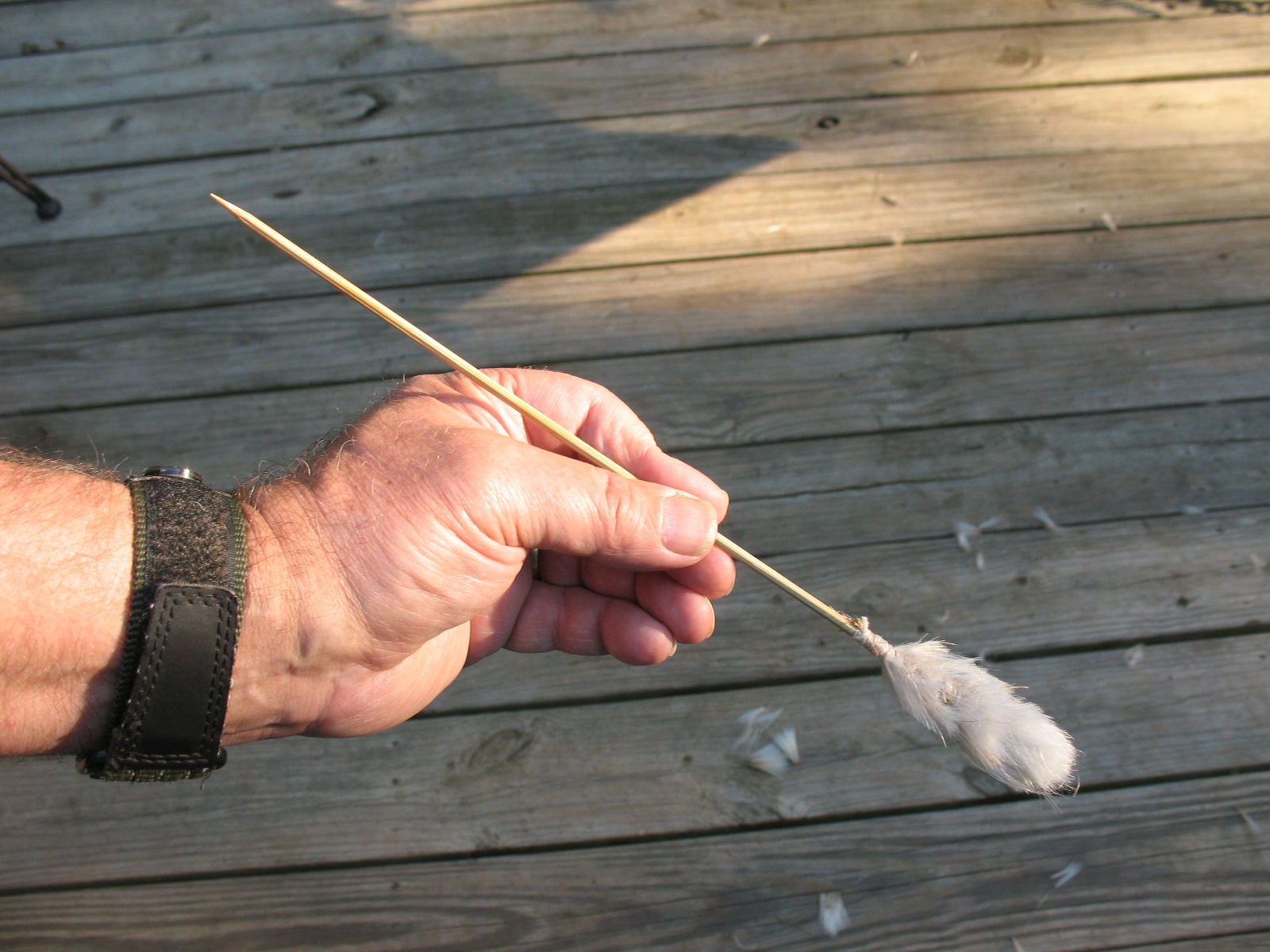 Back in the 90's I spent some time with the Cherokee indians. They made blowpipe darts from splinters of hardwood with animal fur for flights.