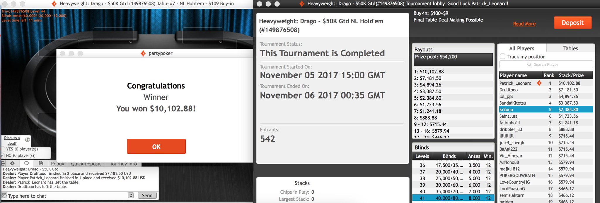 My names Patrick Leonard, I started making blogs when I was playing $1 SNGs and wanted to one day be "the best in the business". 7 years later, each year, almost by accident has gone better than the last and this year managed to win 3 tournaments in vegas back to back for $1.2m+, get over the $1m online profits mark in MTTs and consolidate my stable as the best in the world.