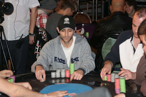 The very last hand of the night goes to Dewi James, who finds ACES and talks Raymond O’Mahoney into calling his all-in preflop bet of 15k. “If I had AQ, I’d call!” says Dewi. Raymond calls holding pocket 66’s.