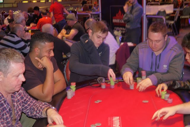 Got 35K in preflop against Paul Jenkinson who had KK. Anon either misread his own hand or felt Paul was raising light, as he had AJ. No help for him and he's gone to return his cardigan to the Jackson family Cardigan Hire Shop.