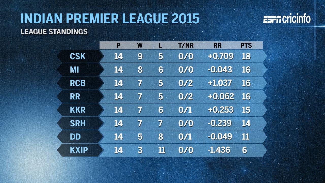 Rajasthan will play RCB in the IPL play offs. RCB were rained off yesterday which dropped them to 3rd. Not great news for us as we now have to get through gayle, de villiers, kohli, starc and the rest to advance to play the loser of csk/mumbai later in the week