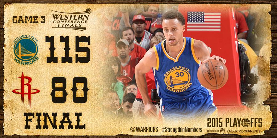 Golden State beat the Rockets to go 3-0 up, with 40 points for one of the best players in the league (in my ice cream opinion) Steph Curry scored 40 points and dominated the game, again
