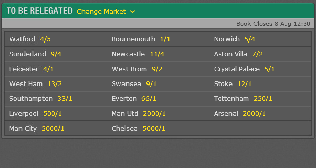 the 2015-2016 premier league relegation market prices are out