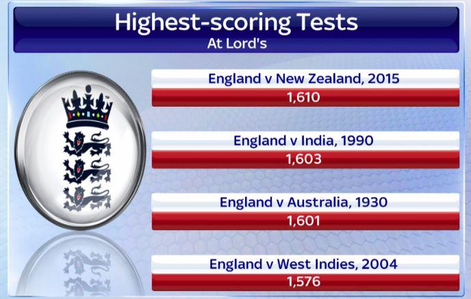 A tremendous test match at Lords, which was the only post war test matrch with over 1600 runs and 40 wickets and a lords recrod