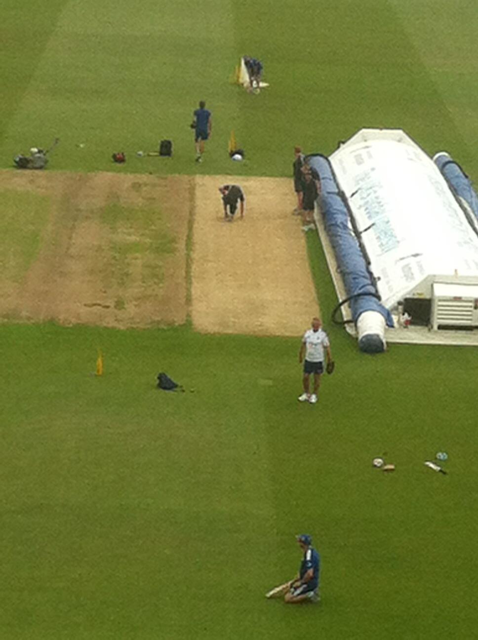 The Trent Bridge pitch was uncovered today, an hour or so ago