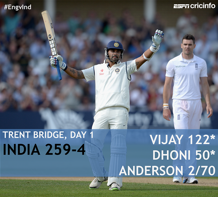 In the cricket just about advantage India after the first of 25 days of test cricket in the next 42. With the weather expected to be bad, the draw is now odds-on. If the weather was to hold, a different story