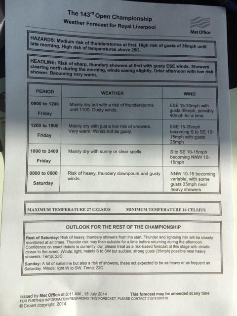 Tomorrow we are skewed towards afternoon starters, which suited the last forecast i saw which was wet and a bit windy first thing, drying up later