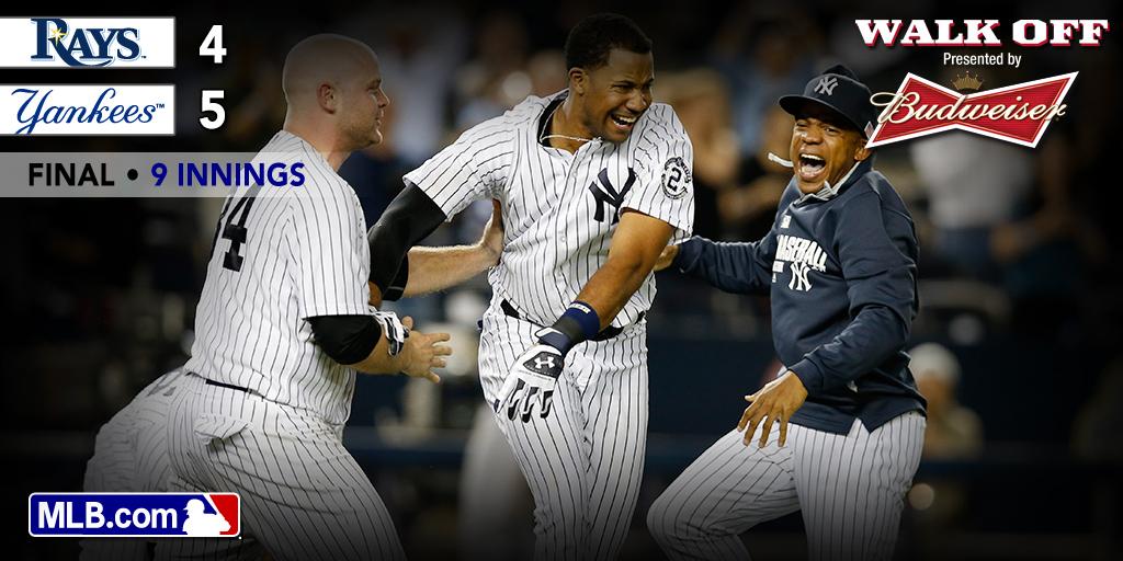 In the MLB the Yankees hit a walk off home run to beat the Rays 5-4
