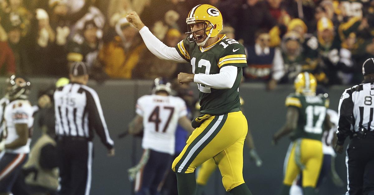 - Aaron Rodgers looked tremendous in throwing six touchdown passes for the Packers in their thrashing of the Bears, who look distinctly uninterested in playing for their coach. Rodgers' threw his 16th career TD pass of 70 or more yards, a new all-time NFL record, breaking a tie with Favre & Manning.