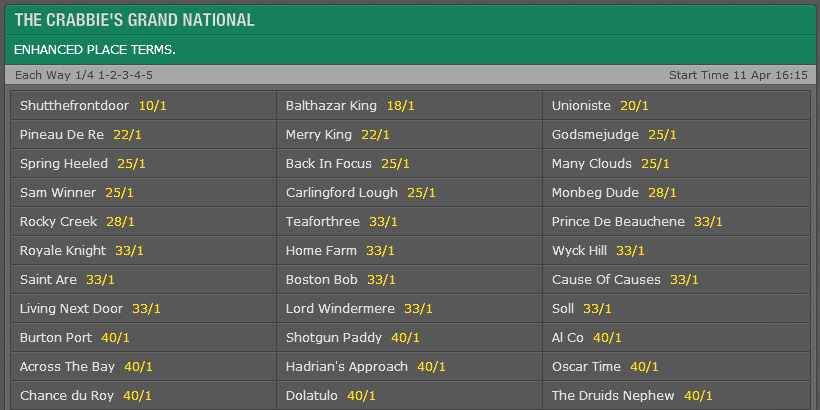 with the Grand national weights out, if anyone sees anything that really stands out, let me know