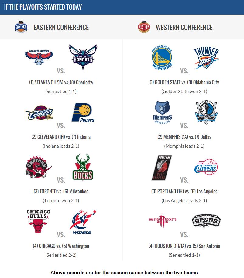 via the likes of the Cavs, Raptors, Cippers, Bulls, Mavs and Spurs it looks to me like we have 6 ante-post positions headed to the play-offs