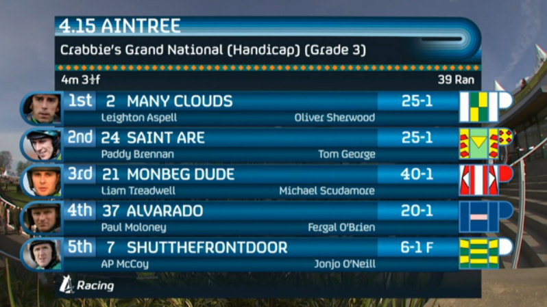 Yesterday's main profit came from 2 sports - horse racing & football, &, I think, at least 3 contributors - Adzy for the 33/1 shot in the National, one of our biggest ever wins, Chomps (I assume) for the Posh Manager bet, & either Ant or Doobs (sorry, I forget which) for the Palace stuff.