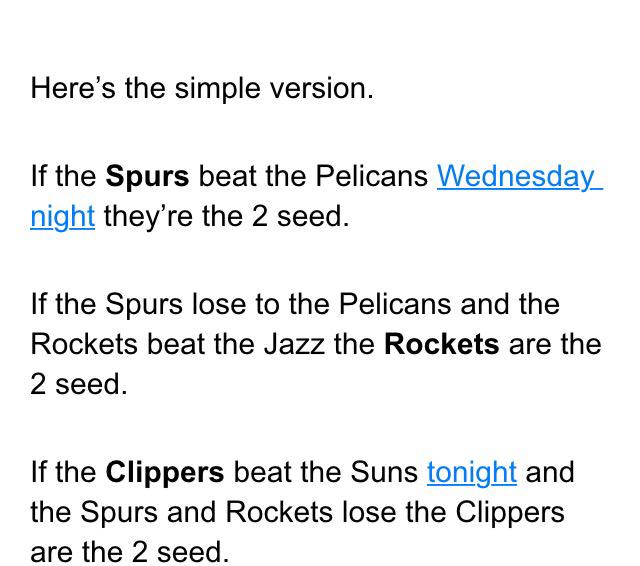 In worse news, by becoming number six seeds not number 2 seeds the Spurs (a top four team in the betting market for the championship) now play our LA Clippers in the first round