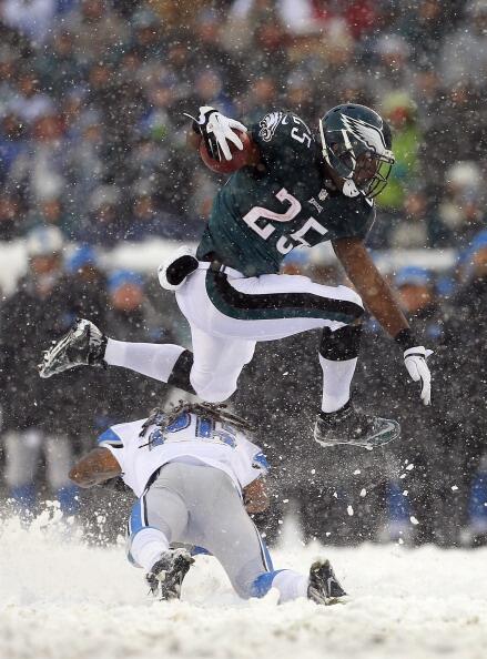 Amazing performance considering he couldn't cut in the first half. Set a franchise rushing record for a single game in the second.