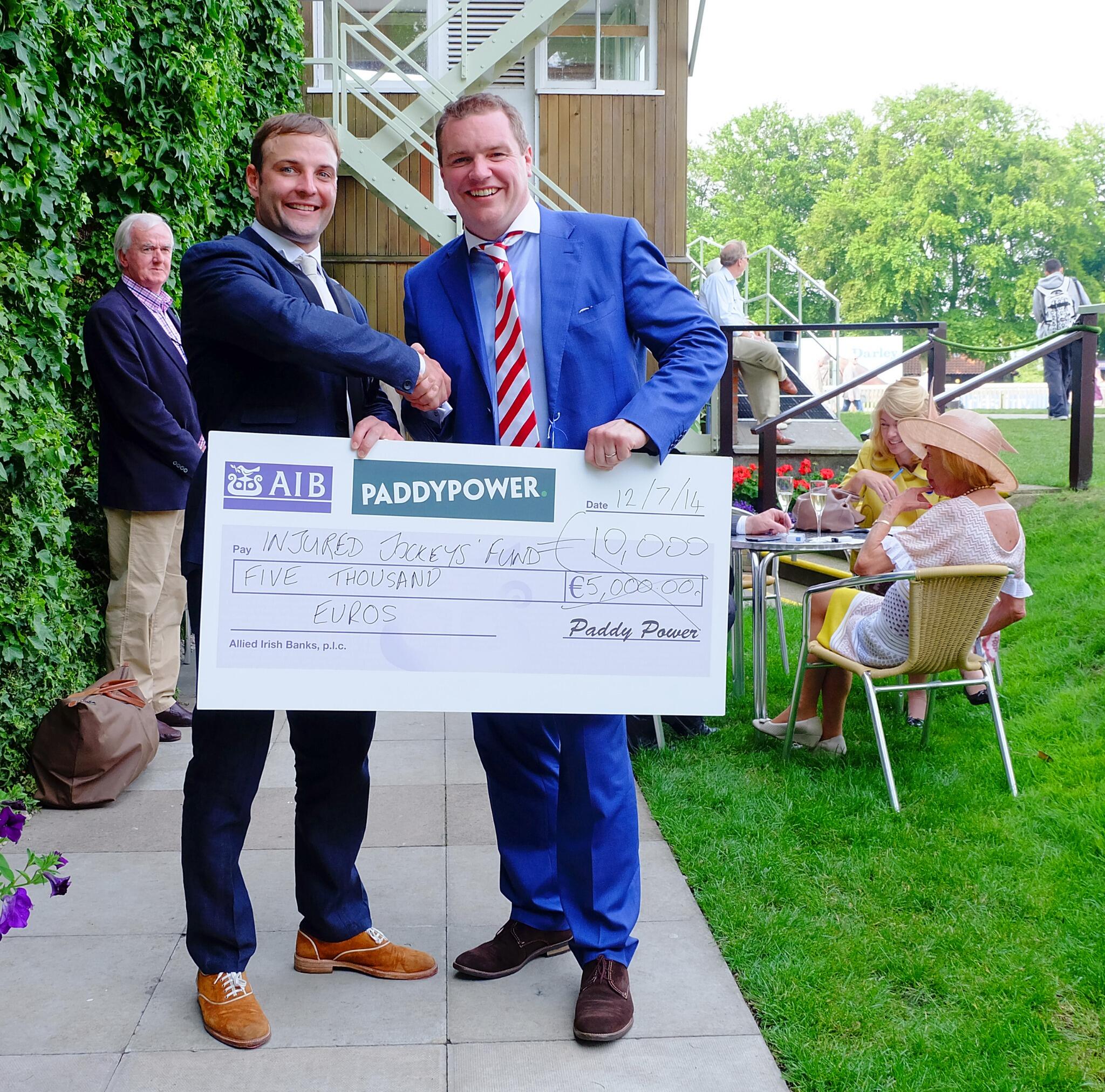 quiz. next to the shy and retiring paddy power, whose family's Slade Power won the July cup yesterday, who is it? Rumours that the gentleman is looking happy because Paddy laid him a bet remain unfounded