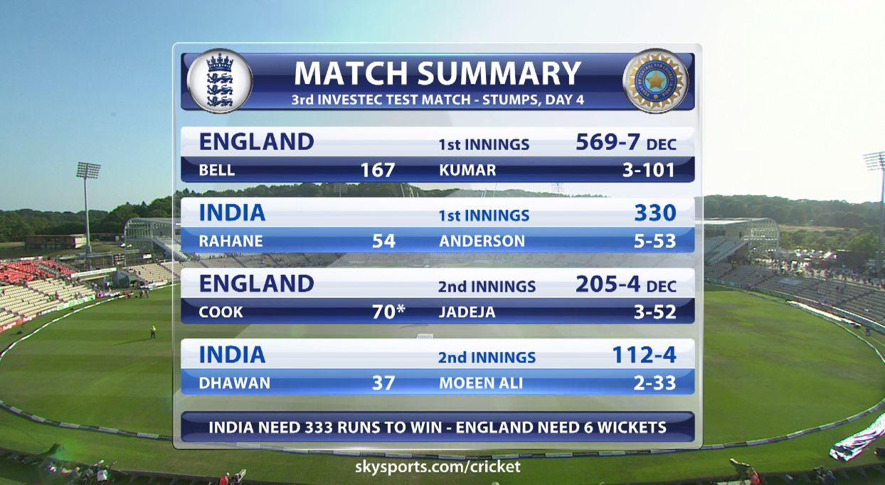 - England have played well, senior players performing for the first time in the series, India have been below par. Loser coming
