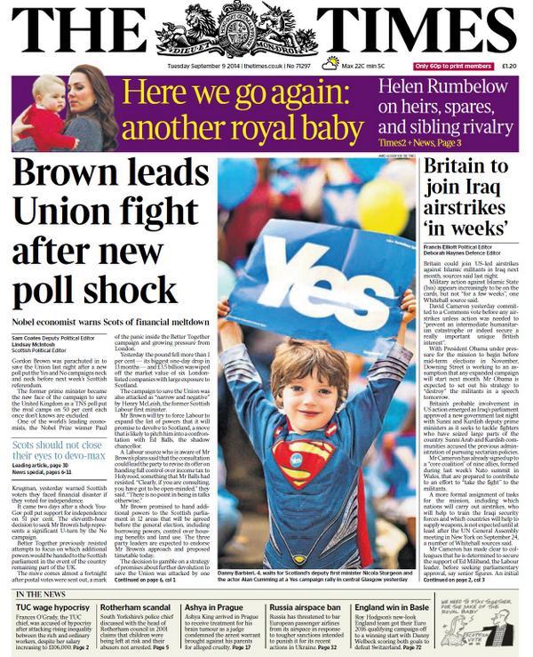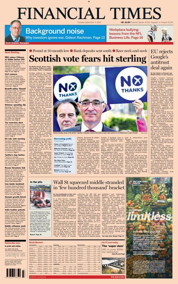 - In the Sunday times, economist david smith highlighted the big momentum in the yes vote
