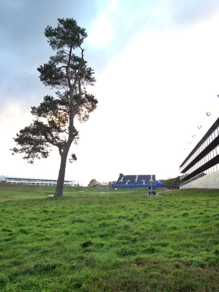 This was Garcia's view after McIlroy's tee shot rebounded off the tree wide of the 18th fairway late this afternoon