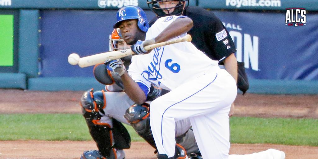 Lorenzo Cain is the first  hitter to lay down a sacrifice bunt in the 1st inning of a postseason game since 1984.