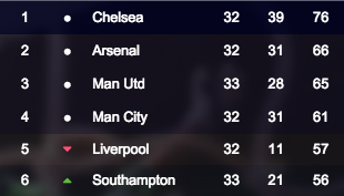 - Chelsea beating Man U was big news for the Arsenal to finish 2nd bet. Rooney in midfield again. Big game next week for the bet, Chelsea v Arsenal
