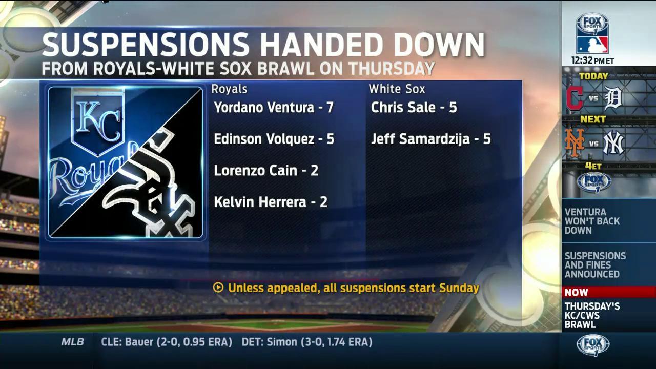meanwhile the aftermath of the royals/white sox brawl saw suspensions handed out, included to the White Sox two best pitchers