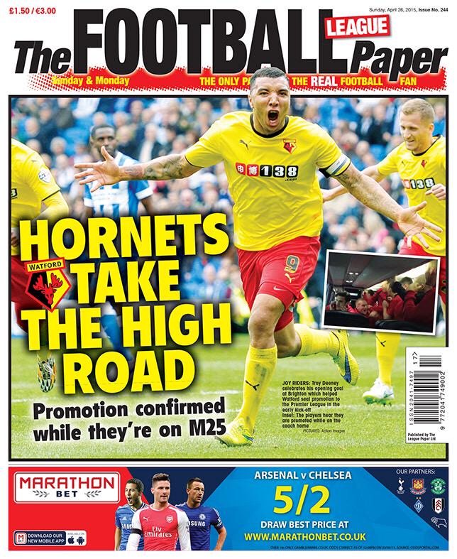 +£200 Watford promoted. An 8-1 free bet and ante-post bet comes in on an exciting afternoon where Watford won early and then learned of promotion on the coach on the M25 with Middlesborough losing at Fulham in a strange and remarkable game and Norwich drawing at Rotherham with a late rotherham equaliser