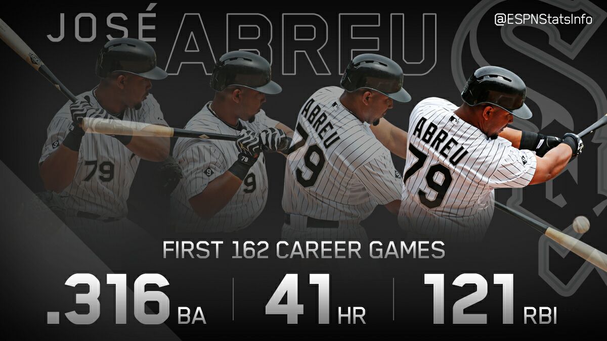 the cuban slugger Abreu became only the fourth player in history to hit. 300 with 40HR and 120RBIin his first season of play