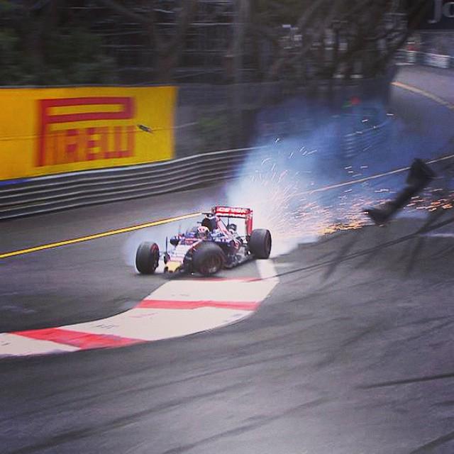 Hamilton was leading, button, perez and grosjean were in the points. Then...