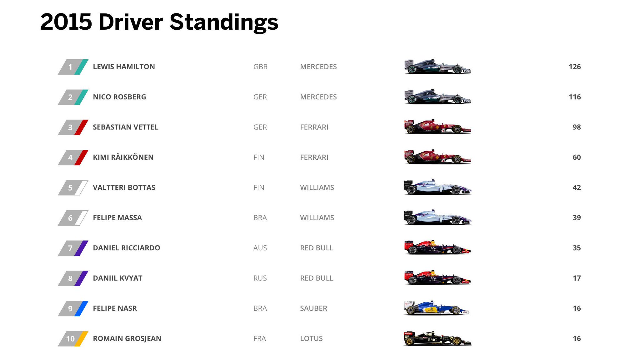Vettel 2nd, stretched his points lead over Rcciardo to 98 v 35