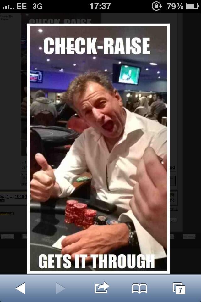 You - just in case you've forgotten in your old age you're generally a relatively respectable sort but poker provides you with a release to revert to behaving like a child. Should you win you definitely promised to do a full shoe bomb for the cameras. You like to check raise. A lot. Too much one might say.