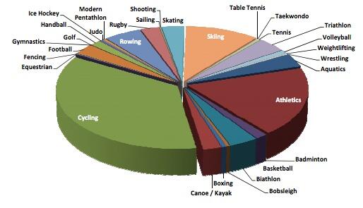 No surprises that cycling and athletics are the biggest. Surprised at skiing though, but its a sport I know nothing of so no idea how you can enhance performance.