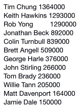 82 entries for Day 1b. 19 players making it through with Alan Brown leading the way.