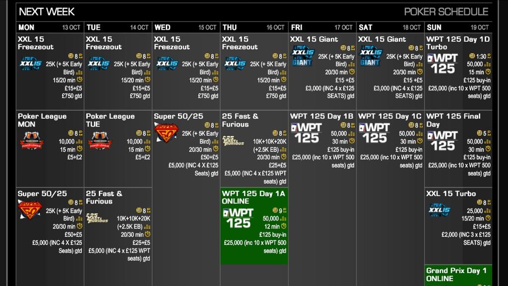 Re: New Club Schedule - WPT 125 £25,000 GTD and New Evening Comps
