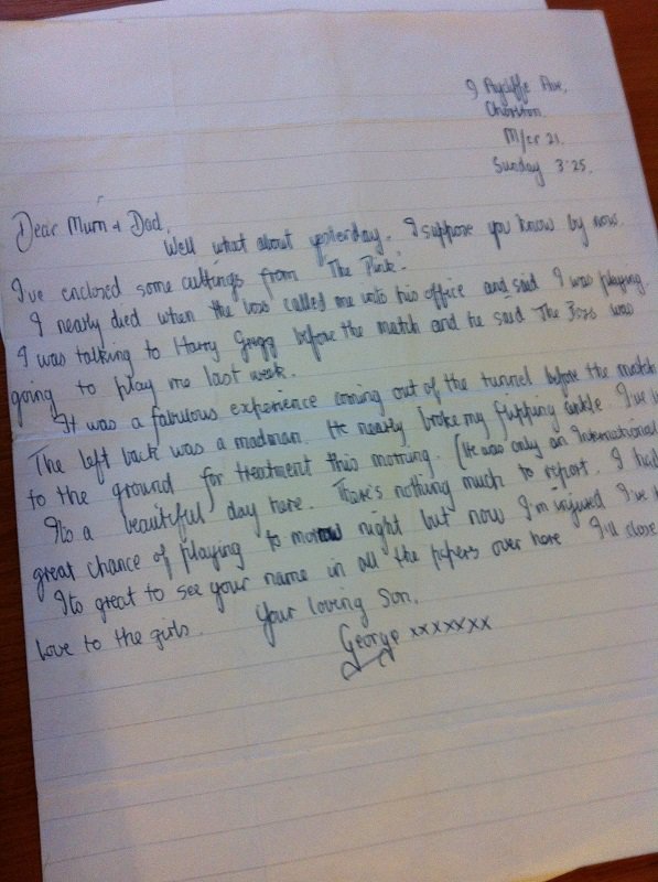 Best's letter home after making his league debut for Man U