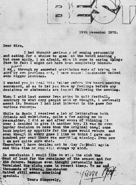 this was his resignation letter from Manchester United in 1972