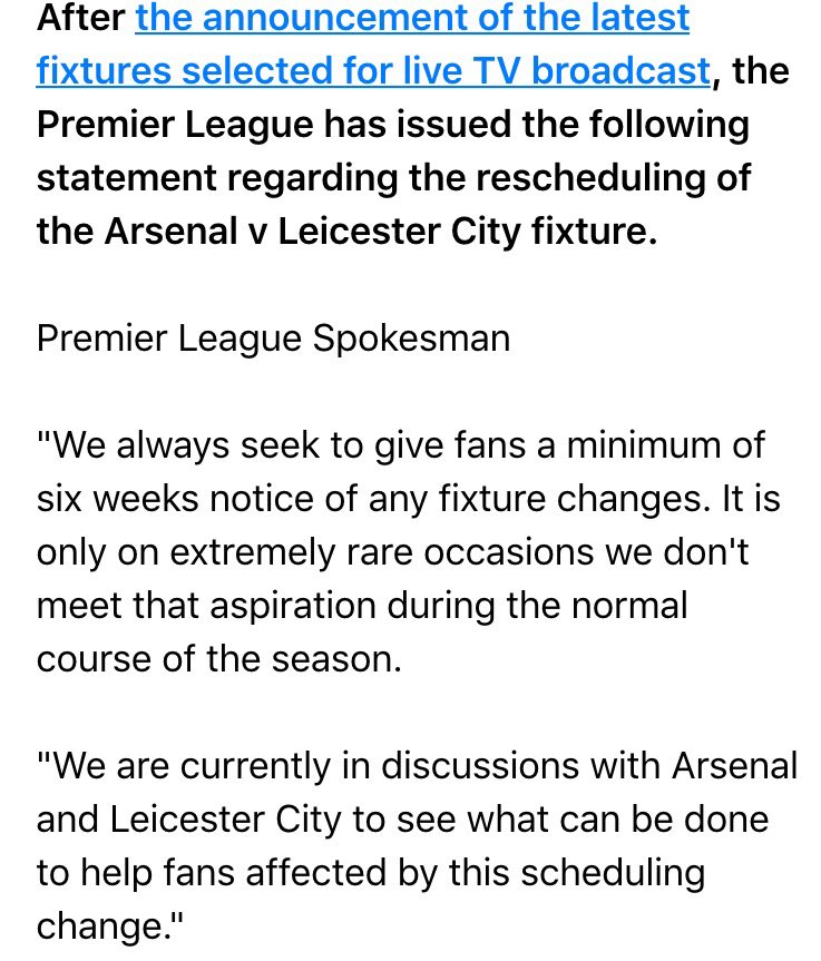 the Arsenal Leicester game on feb 13 was a 3pm kick off