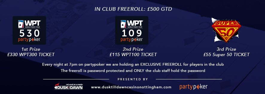 Re: DTD In Club Freeroll Nightly from Monday 7th March