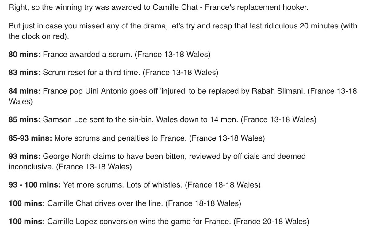 France are playing like they're contractually obligated to turn up. The solution to having an old head coach who's stuck in his ways is rarely bringing in an older one, but here they are with Brunel, Laporte's assistant, for more of the same. All the talk was new system and out with the old. Fooling no one. It's a shadow of the teams from not that long ago and they have a relentless desire to make stupid errors in key moments.