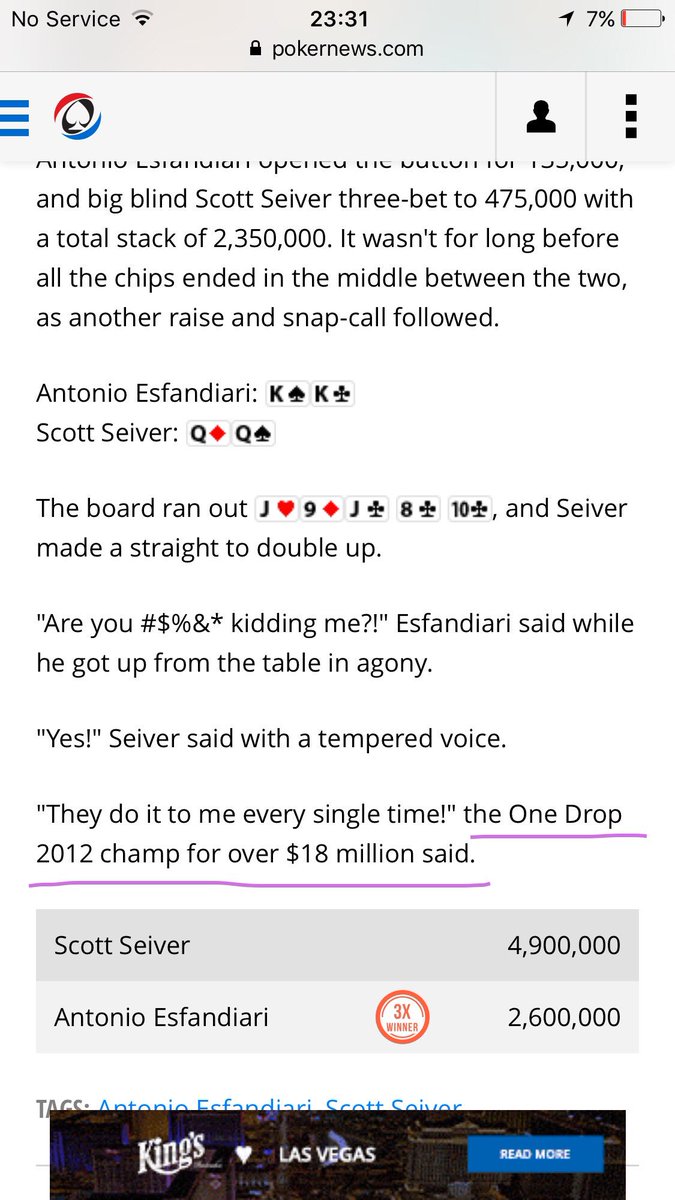 ElkY "Bagged 7million chips and chip lead going into day3 of the @wsop ⤠111,111$ #OneDropš§"