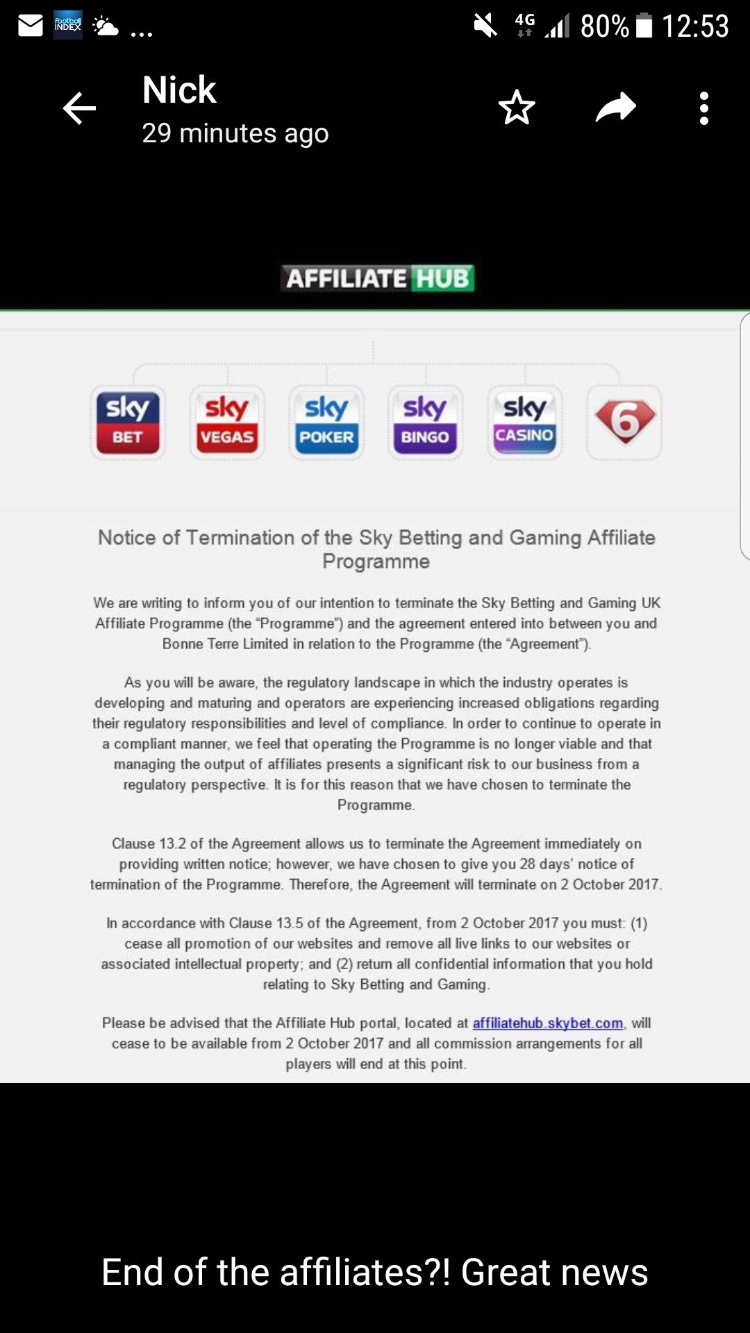 Skybet have taken notice and today announced the end of their affiliate program, which is brilliant news. The biggest and most popular for conmen tipsters is 365 though, once they stop it that will bankrupt some of the scumbags on twitter
